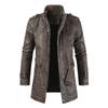 Herren Dickes Fleece Winter Lederjacke Mantel Lang Oberbekleidung Mode Warm Lässig Vintage Kleidung für Männer Steampunk Biker