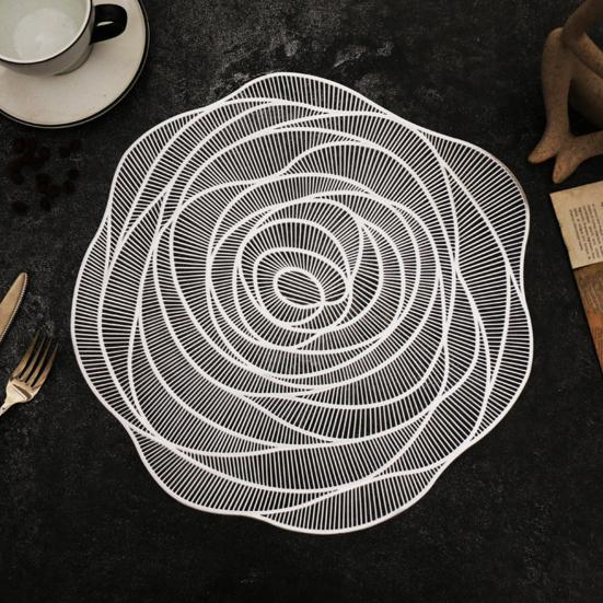 Verbessern Sie Ihr Speiseerlebnis mit unserem exquisiten rosenförmigen Platzset. Dieses Tischset ist aus hochwertigem PVC-Material gefertigt und so konzipiert, dass es hohen Temperaturen standhält und Ihre Tischplatte effektiv schützt.. Seine robuste Konstruktion sorgt dafür, dass es auch nach wiederholtem Gebrauch unbeschädigt bleibt, was es zu einer langlebigen und praktischen Ergänzung für Ihr Zuhause macht.