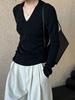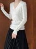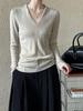 Luxi Damen Minimalistisches V-Ausschnitt Langarm Weiches Basic-Shirt, Herbst 2024 Schlankmachendes High-End Unterhemd (Stil: SS539)