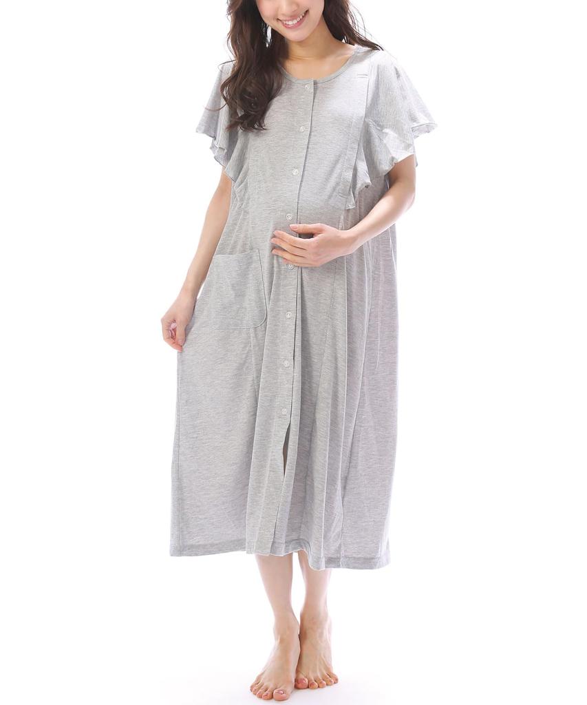 Nishiki Maternity Short Flared Sleeve Dress with Nursing Cotton Blend Jersey Knit Front Long Nursing Nightgown Size Pajamas, Summer, Sleeve, Opening,