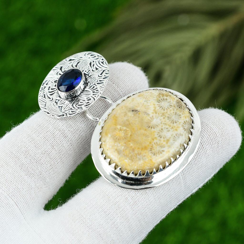 Natürlicher Fossilkorallen Edelstein Anhänger 925 Sterling Silber Schmuck für Mädchen