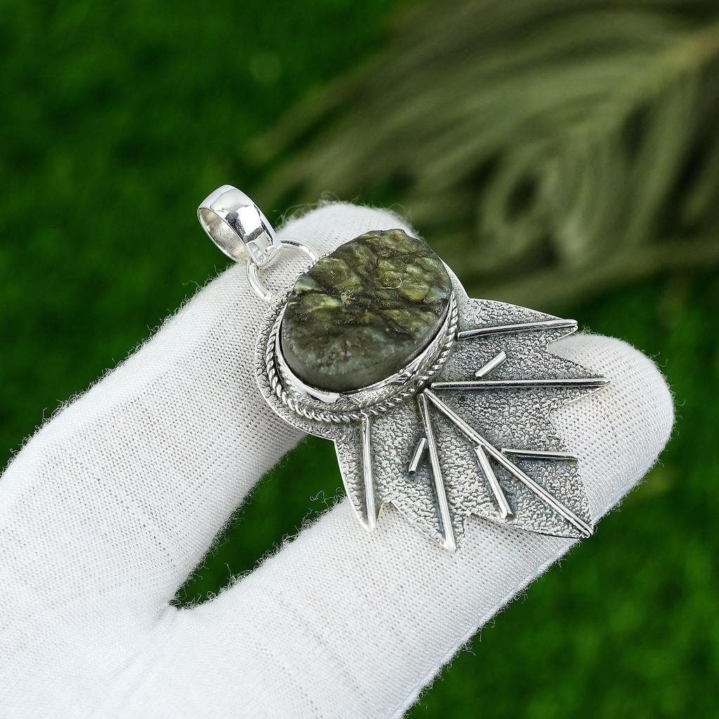 Geburtstagsgeschenk für sie Natürlicher Labradorit Rohstein Anhänger 925 Silber