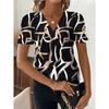 Sommer V-Ausschnitt 3D Gedrucktes Geometrisches Muster Top Modische Lässige Kurzarm Damen T-Shirts