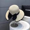 Straw hat women's new bow big eaves fisherman sunscreen hat summer outdoor beach vacation sun hat