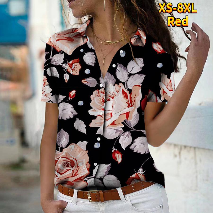 2025 Sommer Neue Mode Damen Blumenmuster Kurzarm V-Ausschnitt Lässig Knopfleiste Hemd Top