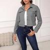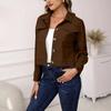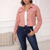 Women Spring Autumn Casual Long Sleeve Lapel Solid Color Pocket Corduroy Short Jacket Coat