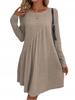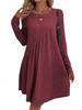 Blau Schwarz Burgunder Beige Geripptes Strick Langarm Rundhals Midi Kleid