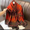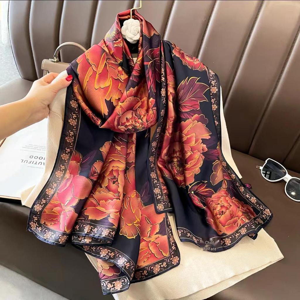 2023 Floral Ethnic Satin Silk Women’s Large Shawl & Scarf
