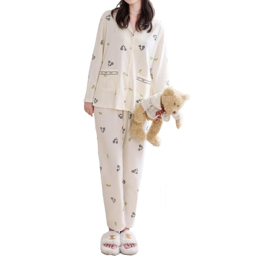 HEWEAYTA Long Sleeve Floral Lightweight Loungewear Set with and Loose Fit Size Women's Open-Front Pajamas, Buttons, Breathable, Comfortable, (White,