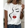 Damen T-Shirt Abstraktes Gesicht Linienkunst Grafikdruck Tops Lässig O-Ausschnitt Kurzarm T-Shirt Sommer Mode Damenbekleidung Shirt