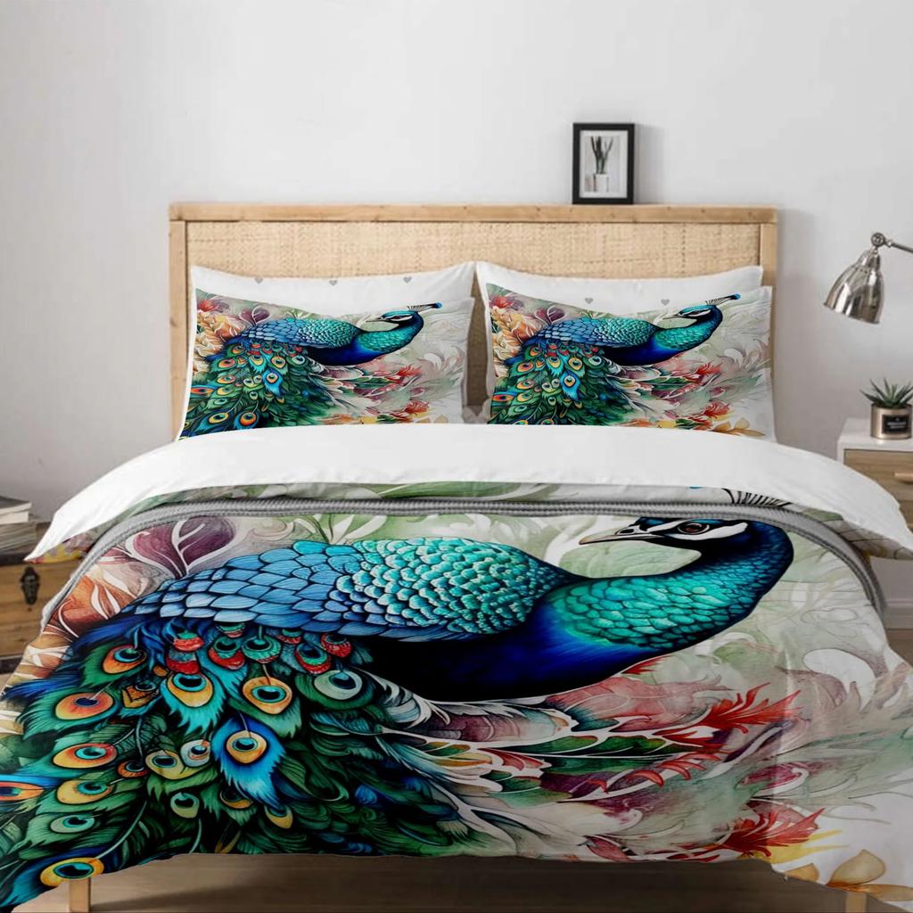 Aquarell Pfau Bettbezug Set King Queen Double Full Twin Einzelgröße Bettwäsche Set
