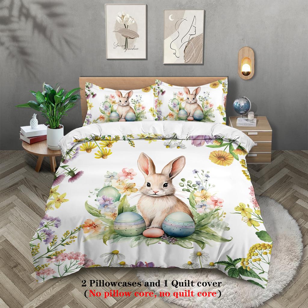 3-teiliges Cartoon Happy Easter Musterdruck Bettbezug-Set, Weich, Bequem und Atmungsaktiv Bettwäsche-Set, für Schlafzimmer, Gästezimmer, Hotel