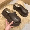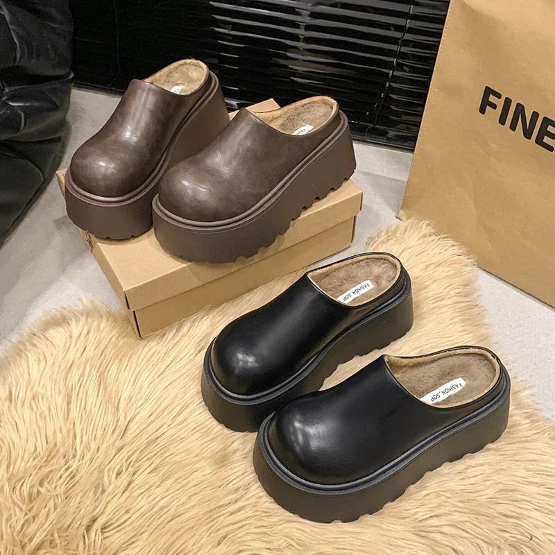 Short Plush Chunky Women Mules Slippers Casual Cover Toe Platform Flats Slides Ladies Comfort Cotton Shoes