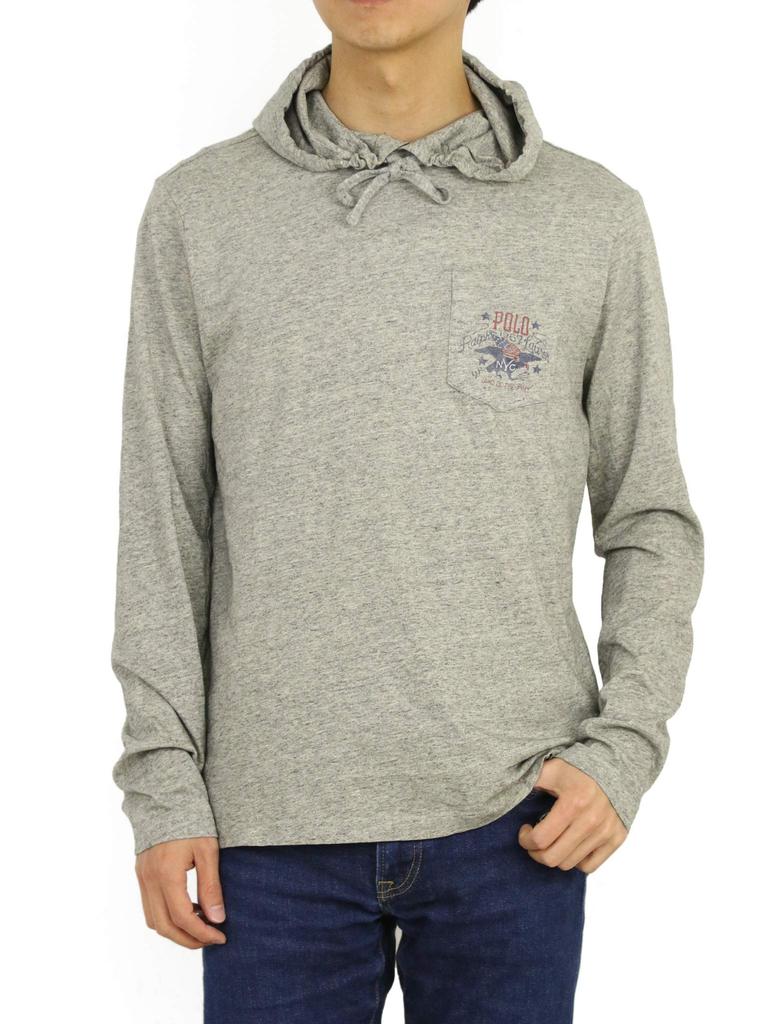 Polo Ralph Lauren Long Sleeve Hooded with Chest Size Men's T-Shirt Pocket, 0107226-M-GREY