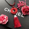 Neoklassische chinesische zinnoberrote Quastenkette Retro-Mode lange vielseitige Pulloverkette vier Jahreszeiten ethnischer Stil Accessoires