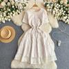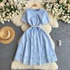 French Style Gentle Dress Women's Accessible Luxury Embroidered Sequins Flower Silm Mid Length Long Length Fancy Gold Style Dress