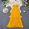 Vacation Style Sexy Sexy Sling Dress Women's Summer New Arrival Tight Waist Slim Backless Stylish Pleated Dress
