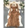 Affordable Luxury Fashion Socialite Elegant Ruched 3/4 Sleeve V-neck Waist-Controlled Slimming Mid Length Long Length A- line Tassel Dress