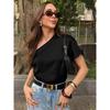 2024 European Shirt Best Selling Stylish One-Shoulder Cold-Shoulder Sweet Fungus Ruffle Sleeve Short Shirt Women's Blouse