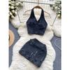 Sweet Cool Sexy Denim Tube Top Vest A- line Suit Skirt