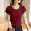 Round Neck T-shirt Short-sleeved Women's New Summer Slim Fit and Slim Shoulder Thread Stretchy Mother Top