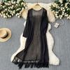 Fancy Idle Style Mid Length Long Length Cardigan Shawl Women's Seaside Holiday Travel Sun Protection Cut Out Knitting Tassel Outwear