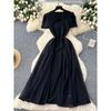 French Style Gold Midi Dress for Women 2024 Summer New Arrival Black Panel Mesh Cinched Denim Casual Young Dress