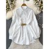 Ladies Long Sleeves Tunic Single-Breasted Dress Shirt