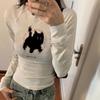 2KWEIRD New Fashion Kawaii Cat Print Grunge T-shirts Autumn Sweet Flower Grey Crop Top Women Y2k Aesthetic Al Match Harajuku Tees