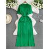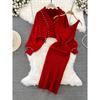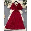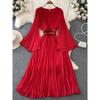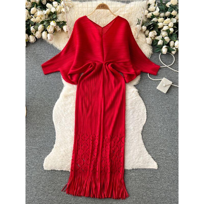 Fashion Style Fancy Loose Temperament Batwing Sleeve V Neck Dress Women's Waist-Tight Slim Looking Ruched Tassel Long Skirt