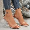 Ladies Transparent Crystal Sandals With A Single Buckle, Open Toe, Sexy Thick Heels, 9cm Simple And Versatile. Women Sandals