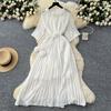 Frühling Herbst Damenkleid Neu Blume Rund Ne Siebenviertelärmel Taillenbetonend Plissierte Kleider für Frauen Schlank machendes Abendkleid