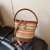 Sommer beliebte Regenbogen gewebte Tasche Damen neue Strandurlaub Stroh Umhängetasche tragbare Bucket Bag