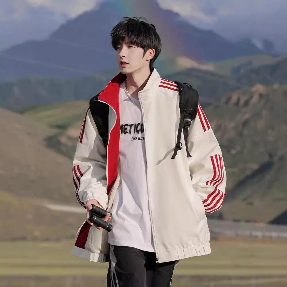 Side Striped Color-blocking Stand Collar Jacket for Men In Spring and Autumn New Loose Casual Sports Jacket