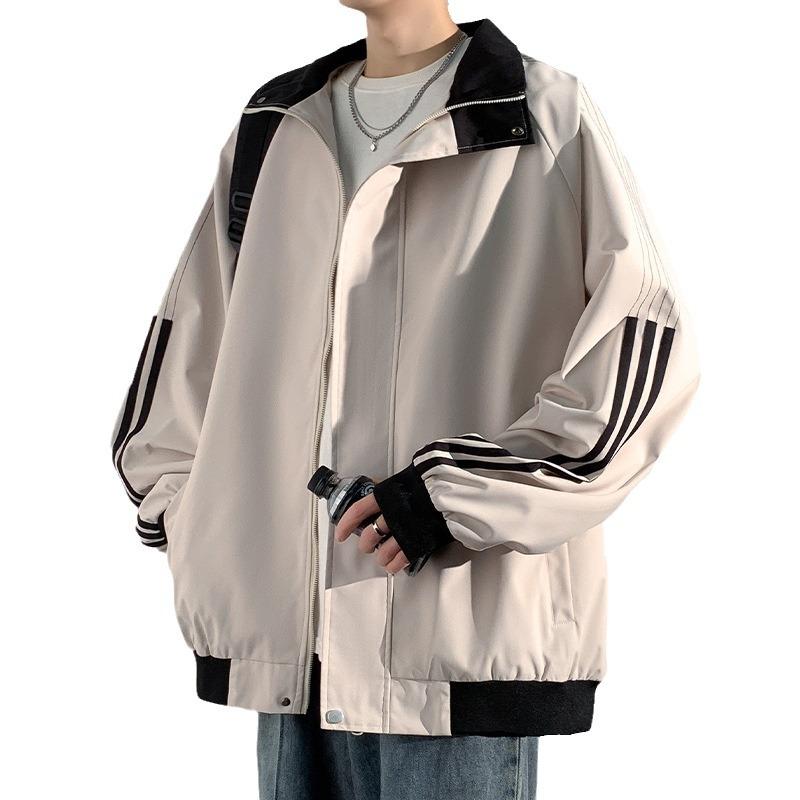 Gestreifte Jacke in Kontrastfarbe für Herren im Frühling und Herbst Neue lockere Partner vielseitige Freizeitjacke für Herren