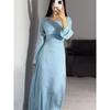 Western Style Pleated Slit Irregular Dress Wrinkled and Slit Irregular Dress