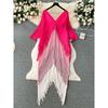 Accessible Luxury Socialite Sanzhai Ruched Half Sleeve Tassel Dress
