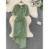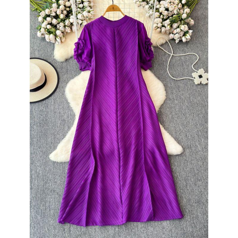 Sanzhai Ruched Fancy Dress Women's Plate Flower Loose Slim Looking French Plus Size Dress Elegance Elegant Long Dress