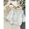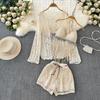Vacation Style Embroider Cardigan Tassel Halter Cut-out Lace