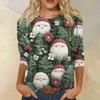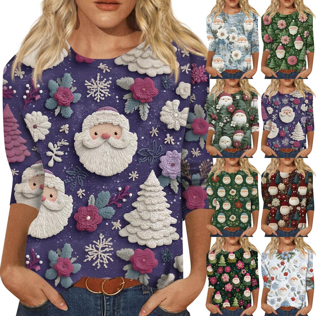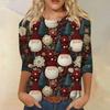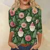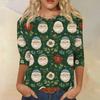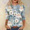 Damenmode, lässig, Rundhalsausschnitt, 3/4-Ärmel, lockeres bedrucktes T-Shirt, Damen-Top