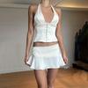 French style High-Grade Irregular Color Matching Hanging Neck Tube Top Vest Women 2025 New Sexy Gyaru Shorts Two-piece Set