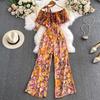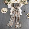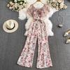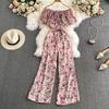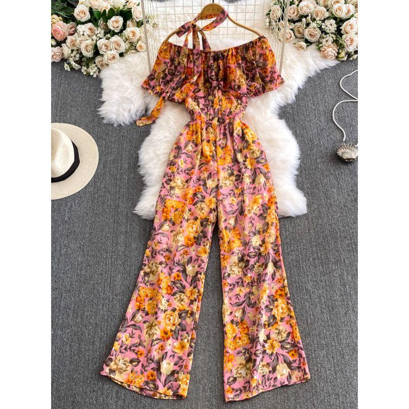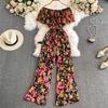 Women's Floral Loose Pants Jumpsuit Summer High Waist Waist-Tight Slimming Flounce off-Shoulder Jumpsuit Short Sleeve