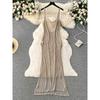 High Cold Adult Lady like Woman Wear Women's Work Clothing All-Match Tutu Stylish Stretch Silm Mesh Patchwork Fishtail Bodycon Dress