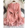 European and American High-Grade Lantern Sleeve Dress Women Summer Frill Three-Dimensional Flower Strap Design Unique Beautiful Short dress