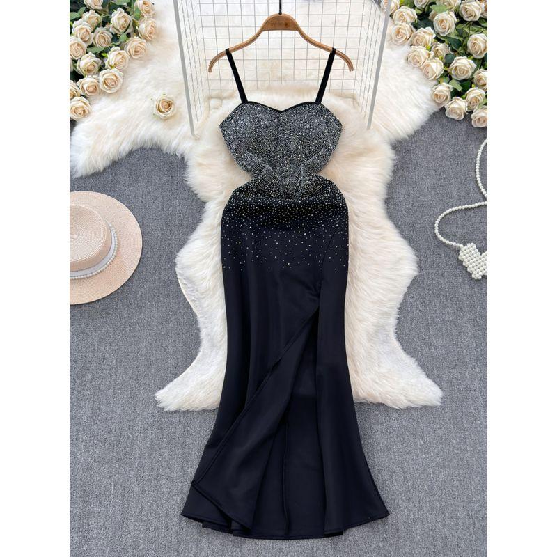 Women's Dress High-End Affordable Luxury Niche Temperament Long Sling Dress Summer Car Model Host Dress Birthday Banquet