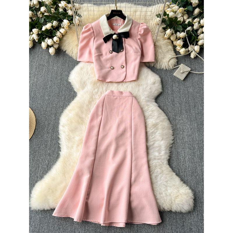 Qianjin Style French Socialite Small Dress Women's Fancy Classic Style Puff Sleeve Top + High Waist Fishtail Skirt