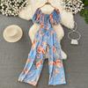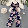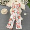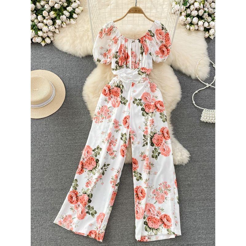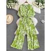 Seaside Holiday Ruched Square Collar High Waist Casual Short Sleeve