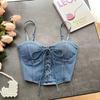 Pure Desire Sexy Denim Camisole Female Sexy with Breast Pad Slim-Fit All-Matching Short Beauty Back Chic Tied Top