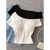 Sweet and Spicy Small Top Women's Stylish One-Shoulder Cold-Shoulder Single-Side Sling Silm Short Crop Top Versatile Holiday Small Shirt Fashion