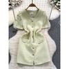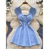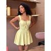 Age-Reducing Yellow Elegant Square Collar Slimming Short Dress